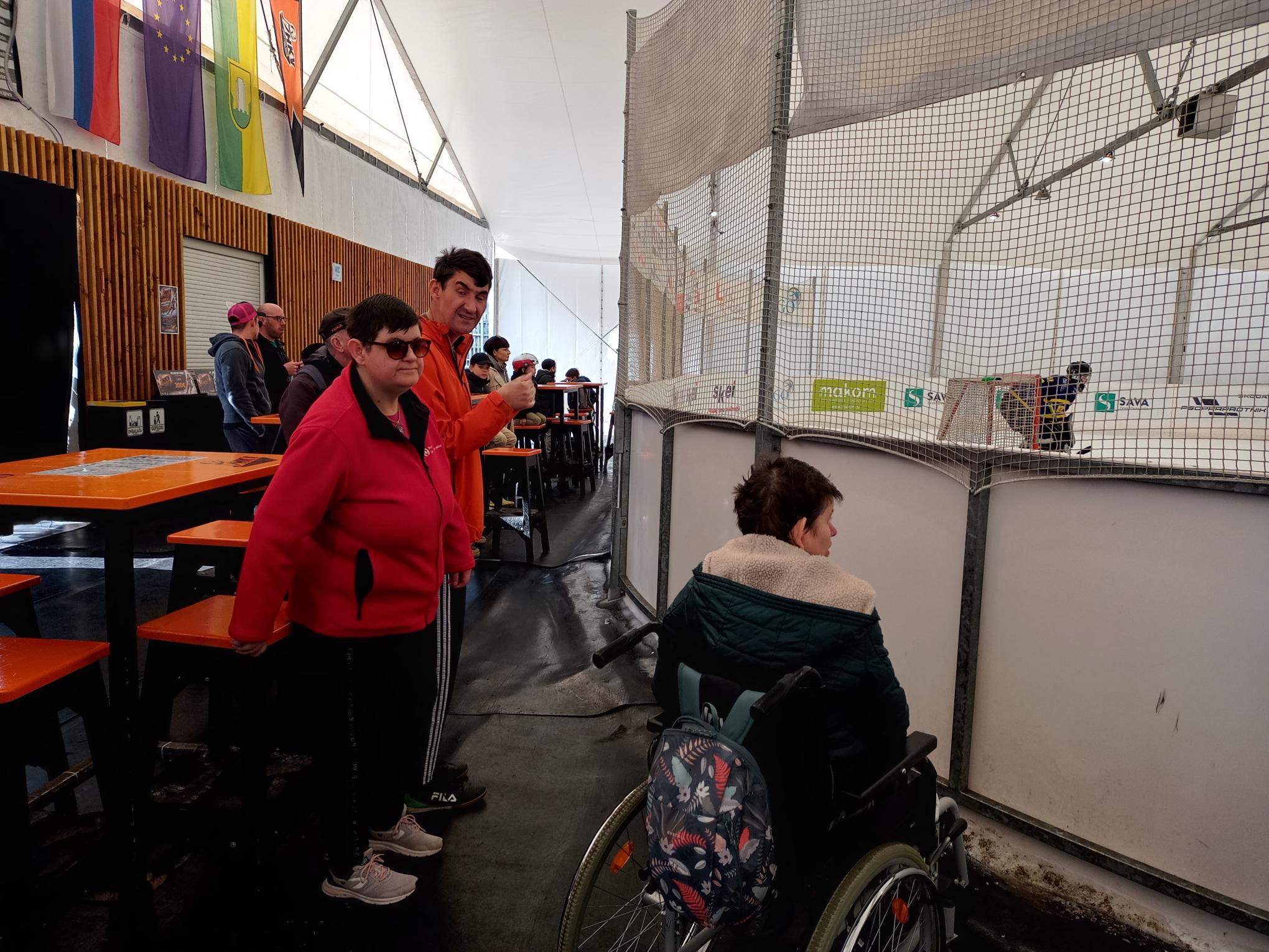 Ogledali smo si hokejski turnir rekreativnih igralcev hokeja na ledu na drsališču v Velenju. Varno za zaščitno mrežo smo navijali za igralce in vratarja, ki se je po tekmi tudi fotografiral z nami.