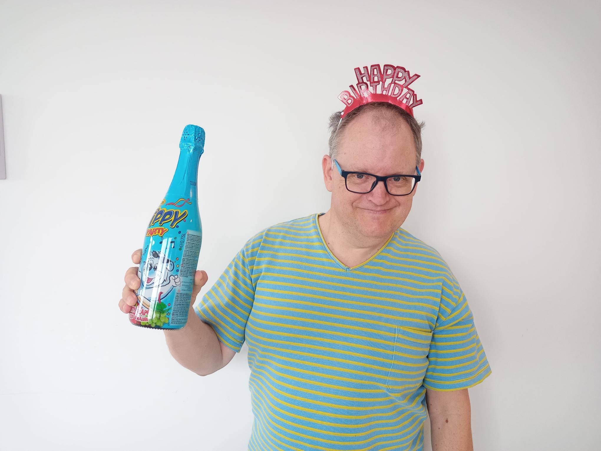 Praznovali smo Simonov rojstni dan. Ob tej priložnosti smo si nazdravili z otroškim šampanjcem in se posladkali z roladicami ter napolitankami.