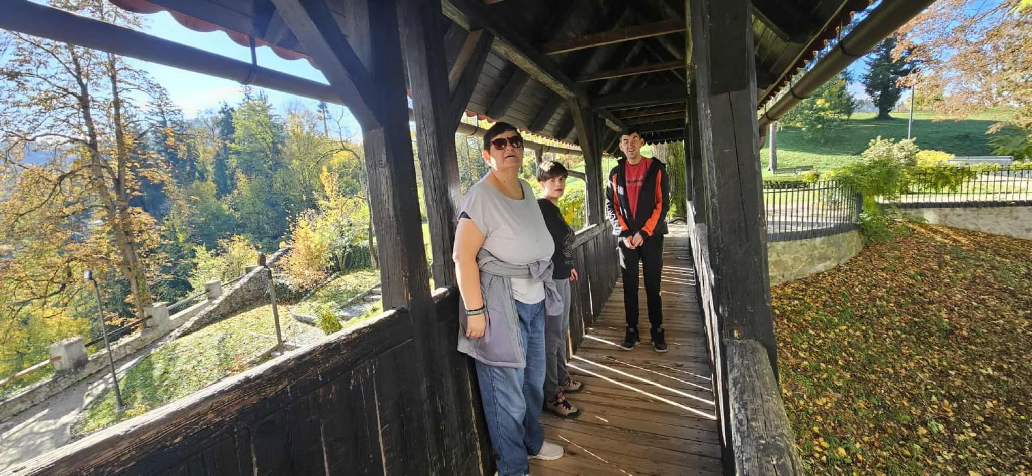 Jutranji pogled skozi okno nas je navdihnil, da se podamo na pot proti Velenjskemu gradu. Pogumno smo se povzpeli po 233 stopnicah in bili nagrajeni s čudovitim razgledom na mesto Velenje. Med potjo smo si ogledali skakalnice, ki so namenjene mladim športnikom, ki trenirajo smučarske skoke. Imajo več različnih velikosti, da lahko vadijo tako začetniki kot bolj izkušeni skakalci. Na Titovem trgu smo posedeli na klopcah ter si vzeli nekaj počitka. Prijetno utrujeni, a polni lepih vtisov, smo se vrnili v bivalno enoto. Sprehod je ves čas spremljalo sonce, ki je dodalo piko na i odličnemu izletu.