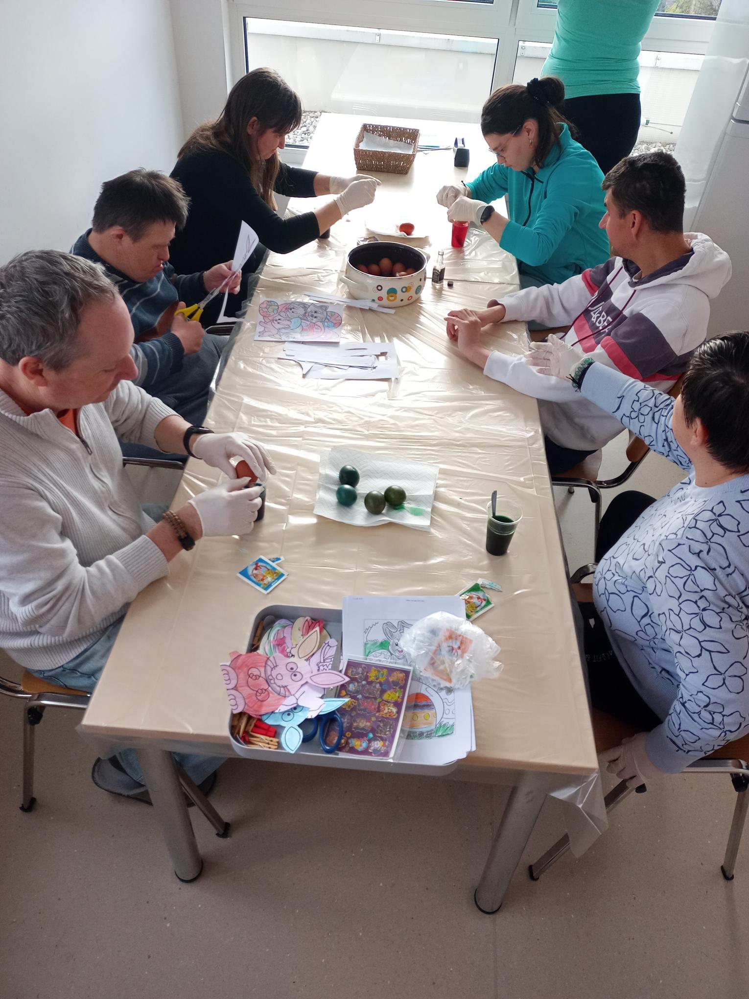 V preteklih dneh smo se skupaj pripravljali na Veliko noč in ob tem preživeli veliko lepih trenutkov. Našo bivalno enoto smo pospravili in jo okrasili s pisanimi risbicami, ki smo jih pobarvali, izrezali in z veseljem razstavili.
