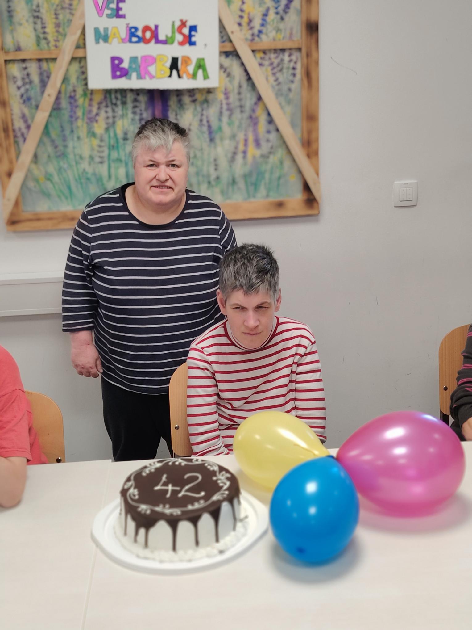 Barbara je praznovala 42. rojstni dan. Obeležili smo ga v prijetnem in sproščenem vzdušju. Pripravili smo manjšo zabavo, kjer smo skupaj uživali ob sladki torti in kozarcu otroškega šampanjca.