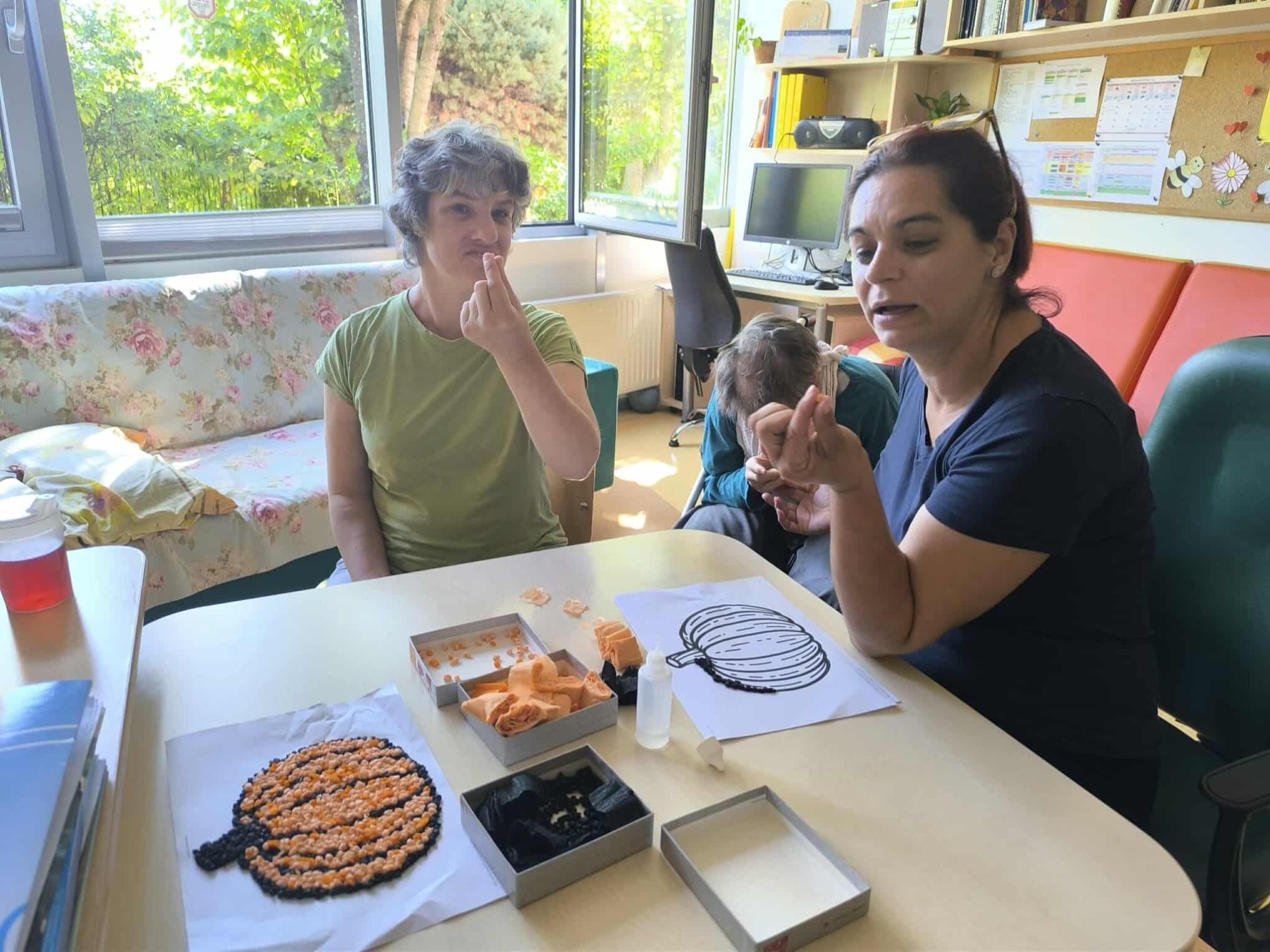 V varstvenih skupinah radi ustvarjamo — od barvanja, sestavljanja pulzov, vezenja, tkanja do šivanja. Vsak dan odkrijemo kaj novega in pokažemo, kaj vse zmoremo! Ko nas razveseli sonce, se z veseljem usedemo zunaj na svež zrak, kjer uživamo v druženju, klepetu in igri. Skupaj nam je lepo, zato smo vedno dobre volje.