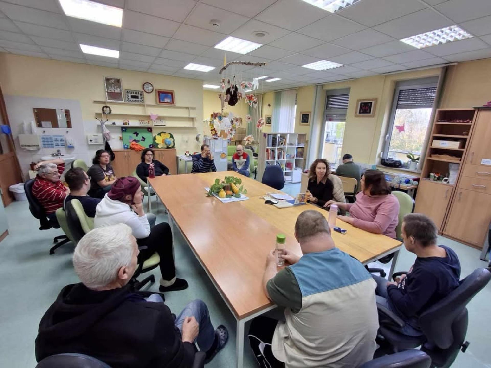 Vsak mesec se srečamo z go. Natašo iz Knjižnice, ki nam pripravi čudovite bralne urice. Običajno se na srečanja odpravimo v knjižnico, tokrat pa smo Natašo z veseljem gostili v naši enoti.