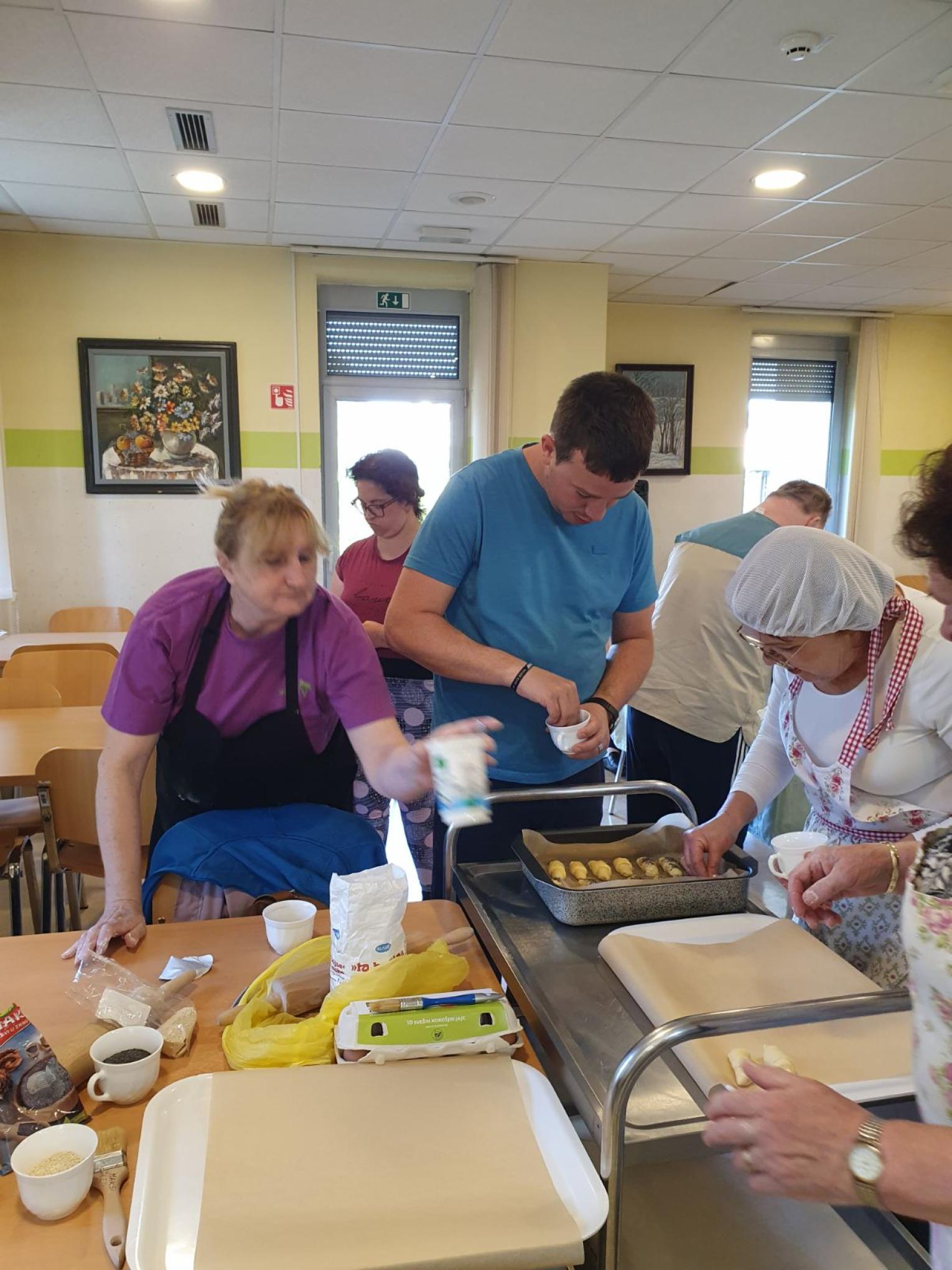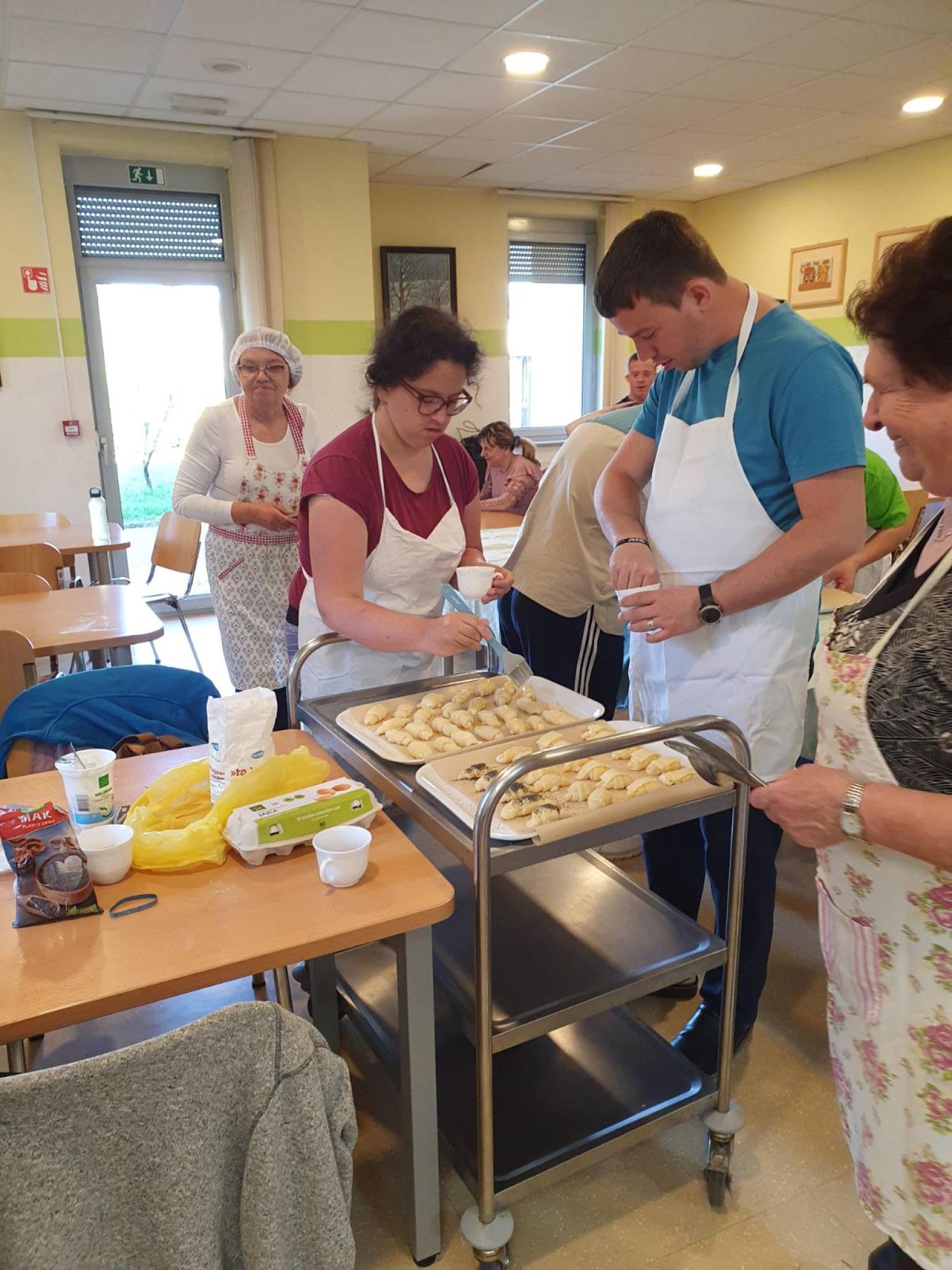 Na gospodinjski delavnici so se nam pridružile gospe iz Društva podeželskih žena občine Žalec. Skupaj smo zavihali rokave in spekli rogljičke s sezamom, makom in sirom.