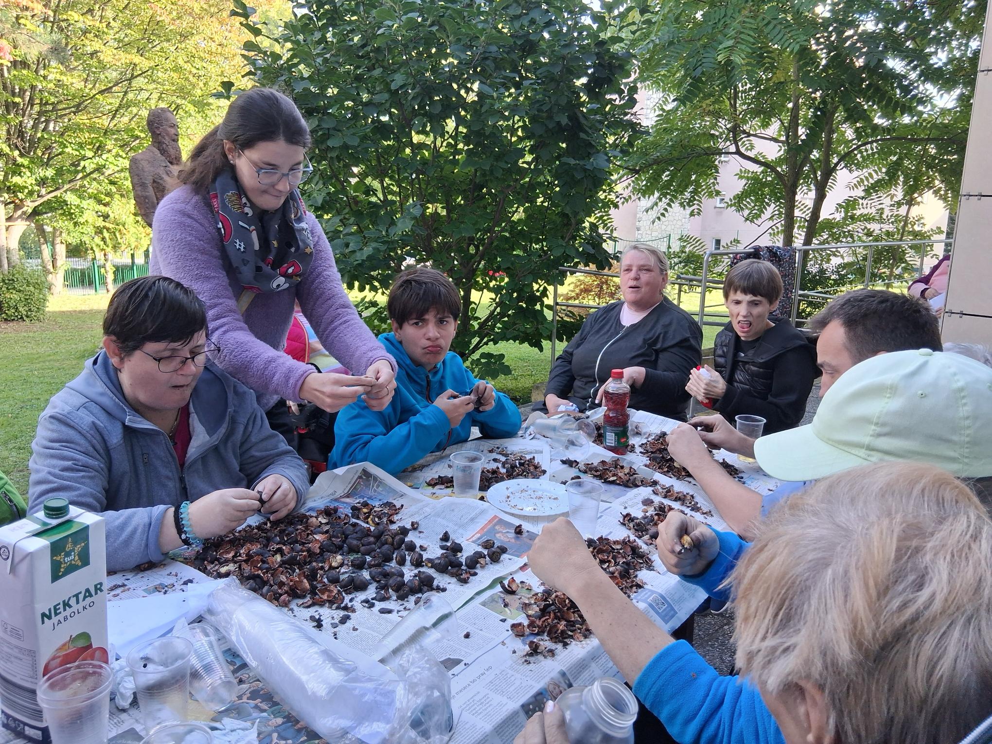 Na sončen jesenski torek smo se stanovalci obeh bivalnih enot zbrali na kostanjevem pikniku, ki je bil poln smeha, druženja in dobre volje. Ob prijetnem klepetu in petju smo uživali v slastnem kostanju. Za osvežitev smo si privoščili jabolčni sok, po koncu pa smo z veseljem skupaj pospravili in zaključili dan z lepimi spomini. Takšni trenutki nas povezujejo in napolnijo z energijo. Komaj čakamo naslednje druženje!