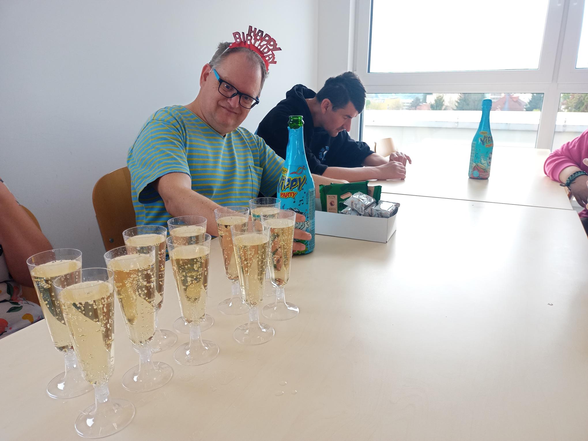 Praznovali smo Simonov rojstni dan. Ob tej priložnosti smo si nazdravili z otroškim šampanjcem in se posladkali z roladicami ter napolitankami.