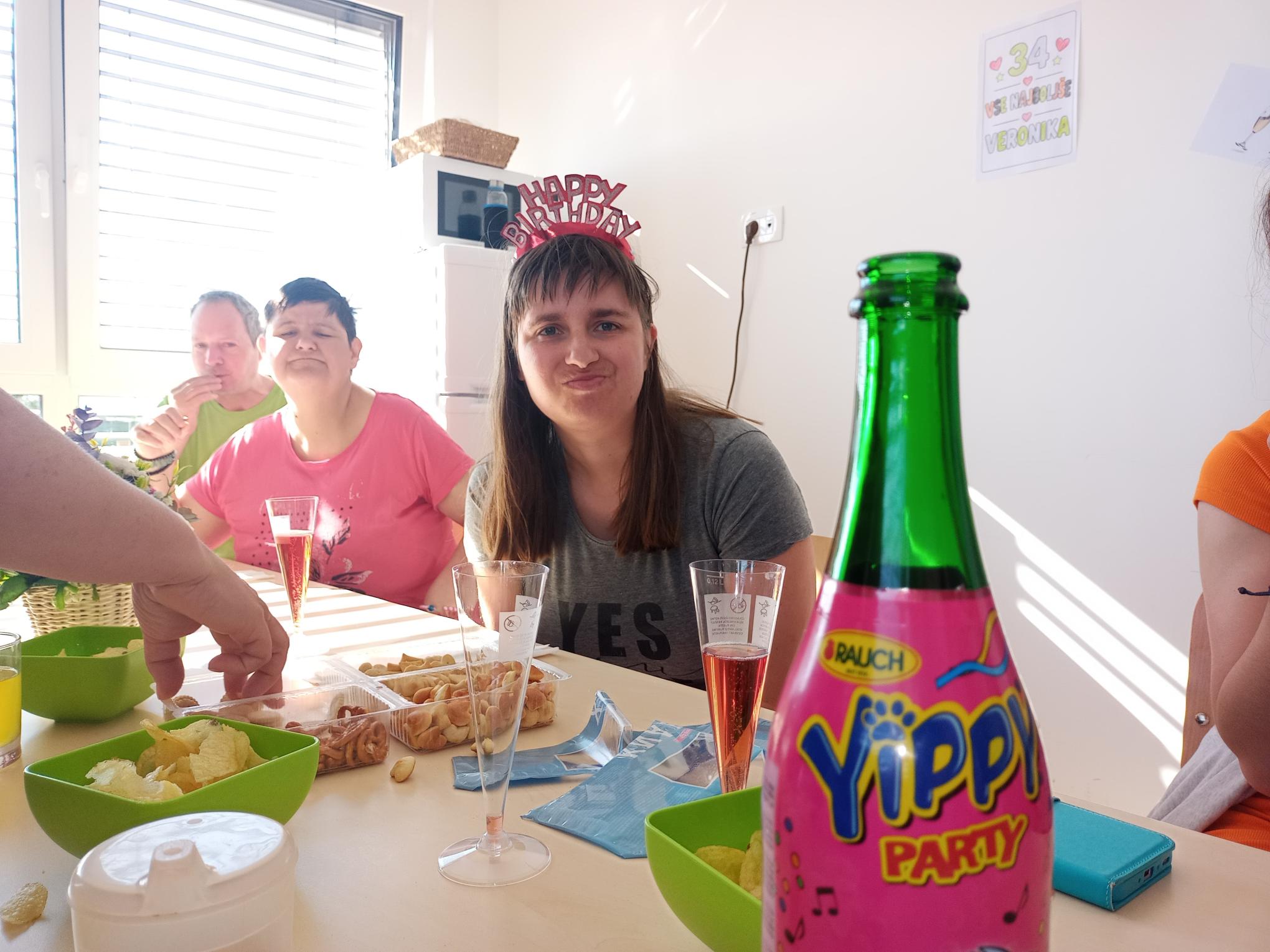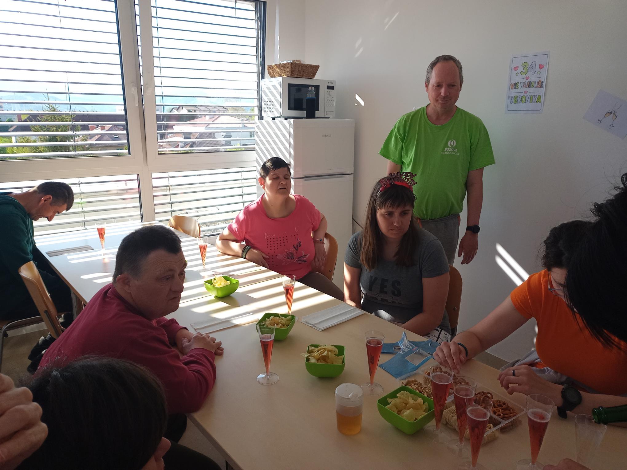 Ob Veronikinem rojstnem dnevu smo na enoti Sončnica ustvarili praznično vzdušje. Obložena miza s prigrizki, keksi, osvežilno cedevito in penino je pospremila sproščeno druženje, v katerem ni manjkalo smeha in toplih besed.