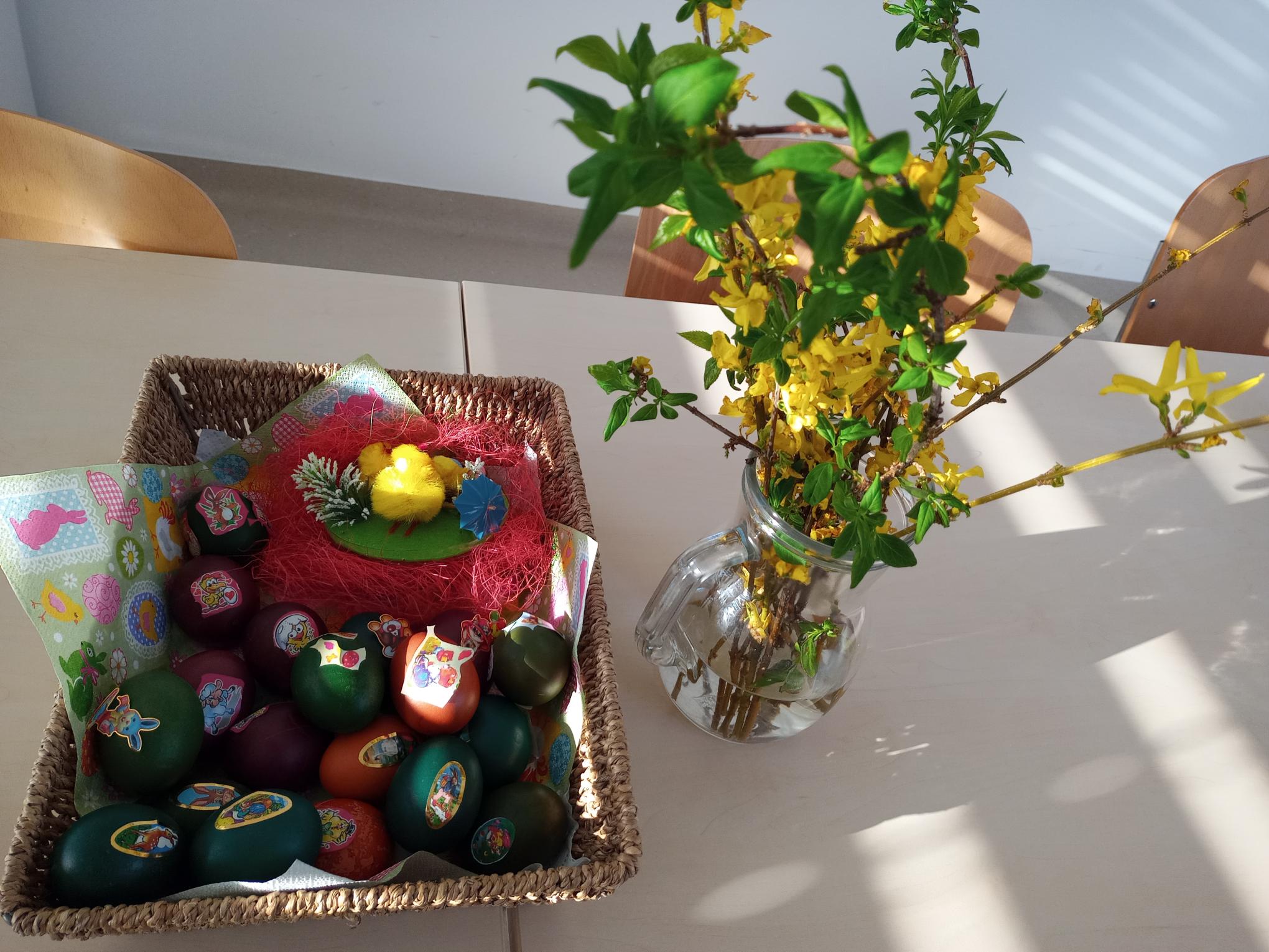 Z veseljem smo pobarvali pirhe, skupaj pripravili praznične dobrote in skuhali šunko. V soboto smo nesli košarico z jedmi na blagoslov, kar je bil za nas poseben in lep trenutek.