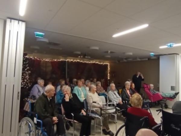 V bivalni enoti Sončnica smo praznično razpoloženje obogatili s koncertom mešanega pevskega zbora DU Paka pri Velenju. Zbor je ob spremljavi harmonike zapel venček Slakovih in drugih domačih pesmi, mi pa smo z veseljem prepevali skupaj. Popoldan je bil poln smeha, glasbe in sladkih trenutkov – pogostili smo se z bomboni ter občudovali praznično okrašeno avlo doma, ki je pričarala pravo decembrsko vzdušje. Naj se veseli december začne!