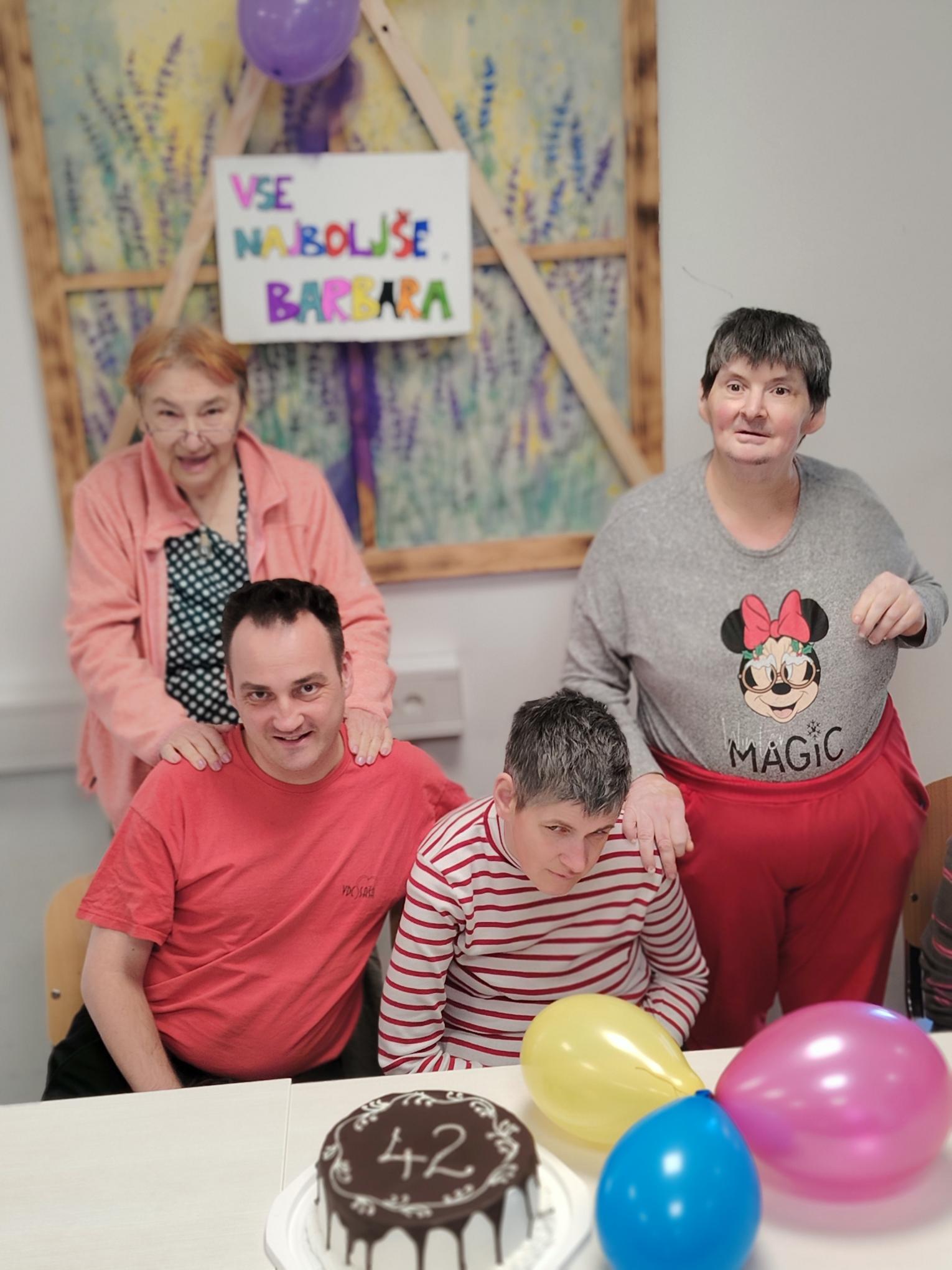 Barbara je praznovala 42. rojstni dan. Obeležili smo ga v prijetnem in sproščenem vzdušju. Pripravili smo manjšo zabavo, kjer smo skupaj uživali ob sladki torti in kozarcu otroškega šampanjca.