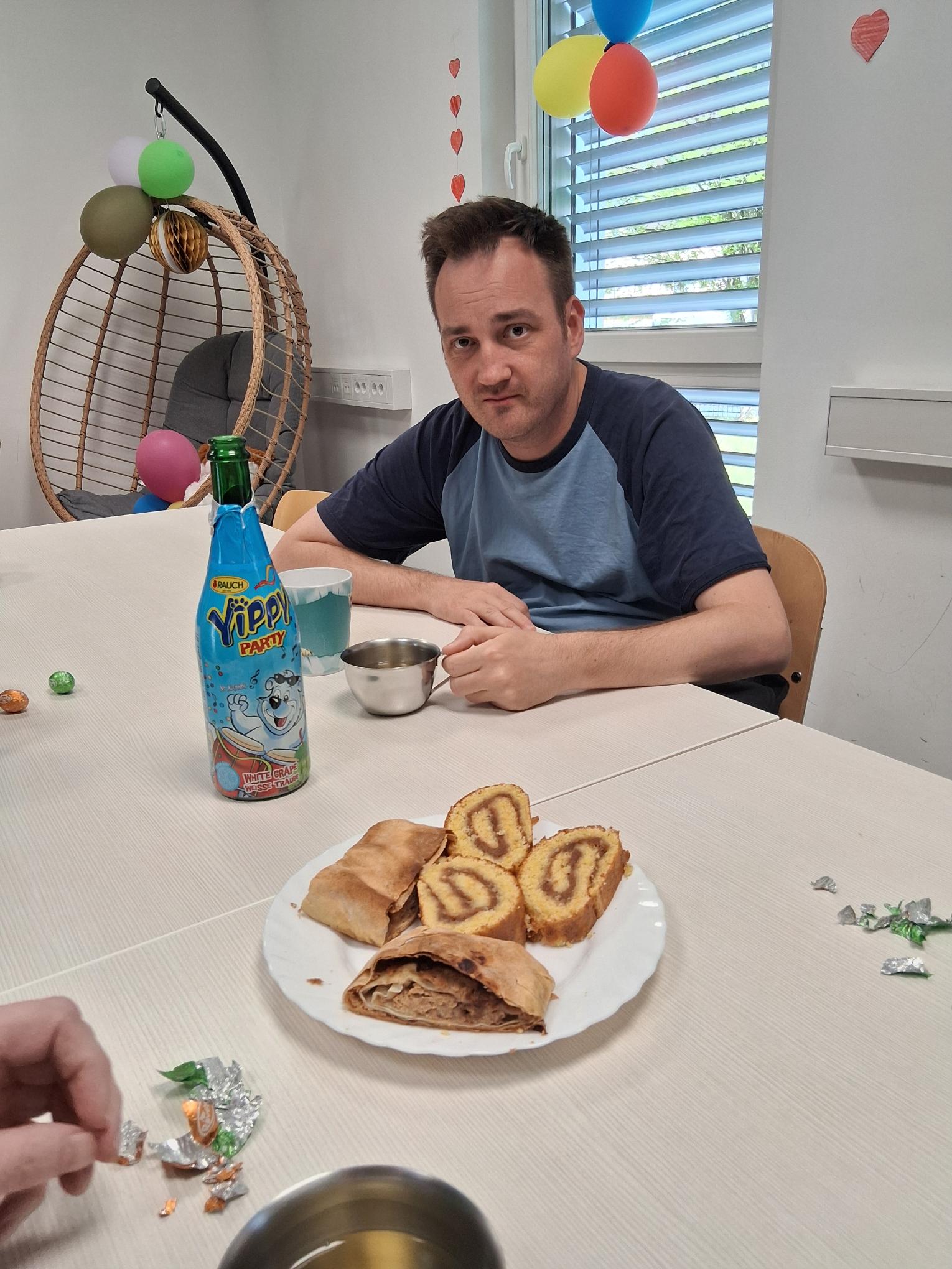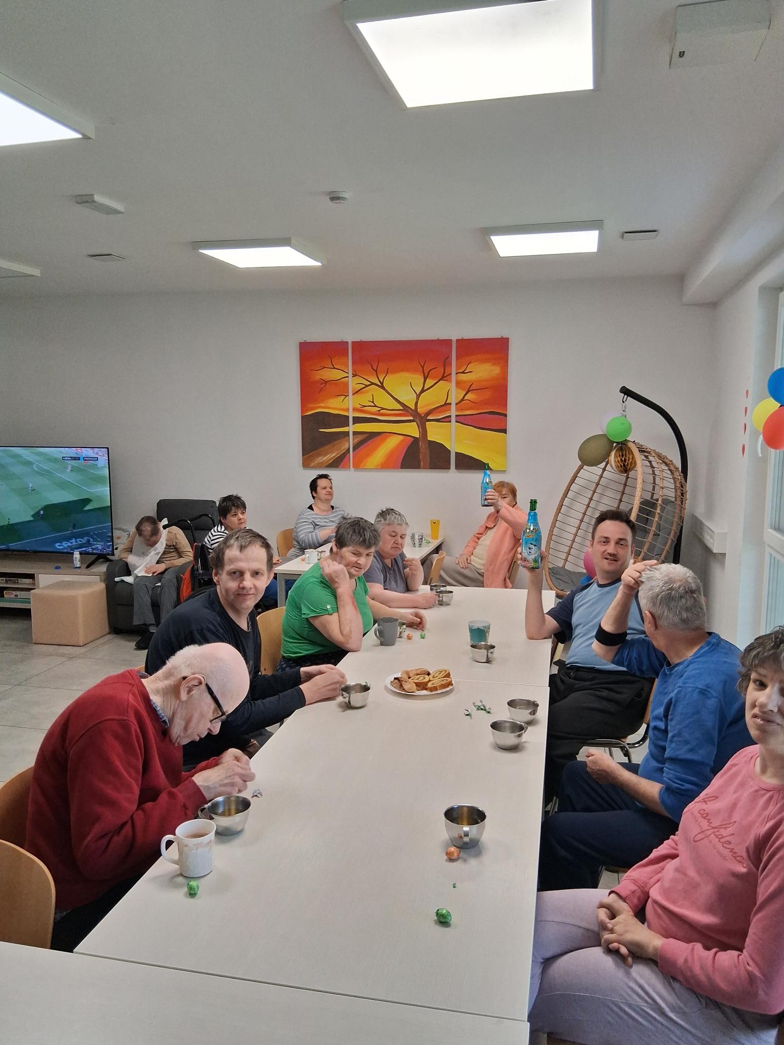Sebastjanov rojstni dan smo praznovali v veselem vzdušju – nazdravili smo s šampanjcem in se posladkali s pecivom. Sebastjanu smo tudi zapeli in uživali v sproščenem druženju ter zabavi.