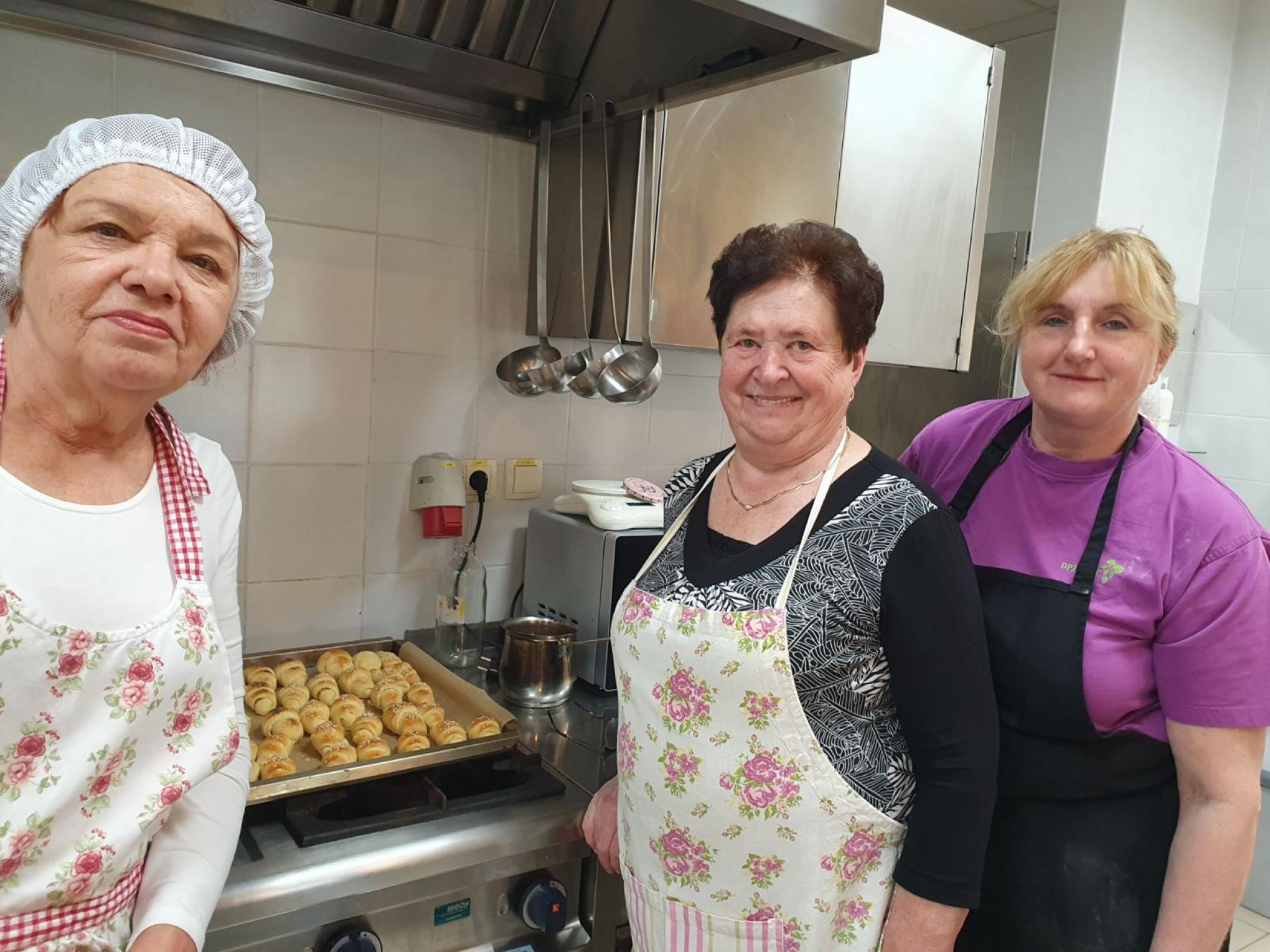Na gospodinjski delavnici so se nam pridružile gospe iz Društva podeželskih žena občine Žalec. Skupaj smo zavihali rokave in spekli rogljičke s sezamom, makom in sirom.